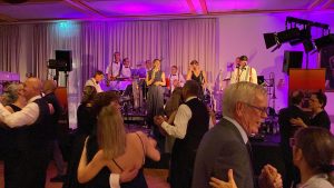 „Im Saal Rosenheim sorgte die mitreißende Partyband NeBRASSka für moderne Tanzmusik, die die Ballgäste auf die Tanzfläche lockte…Der Rosenball 2024 im Kuko war nicht nur musikalisch sondern auch atmosphärisch unvergleichbar….der diesjährige Rosenball war ganz sicher ein wunderbares Vergnügen für alle der 1400 Gäste.“